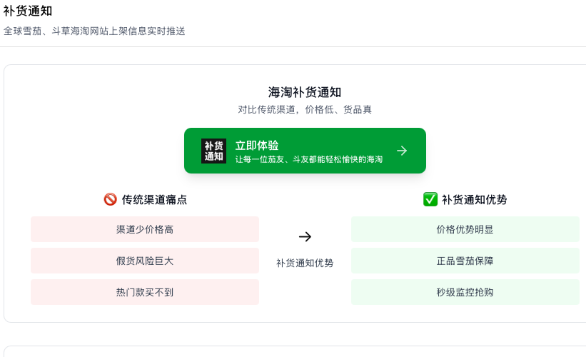 秒茄补货通知是一款全球海淘网站补货通知服务,通过AI技术实时扫描全球精选网站,补货秒级通知,让您告别手动刷站焦虑,助力您海淘无忧。