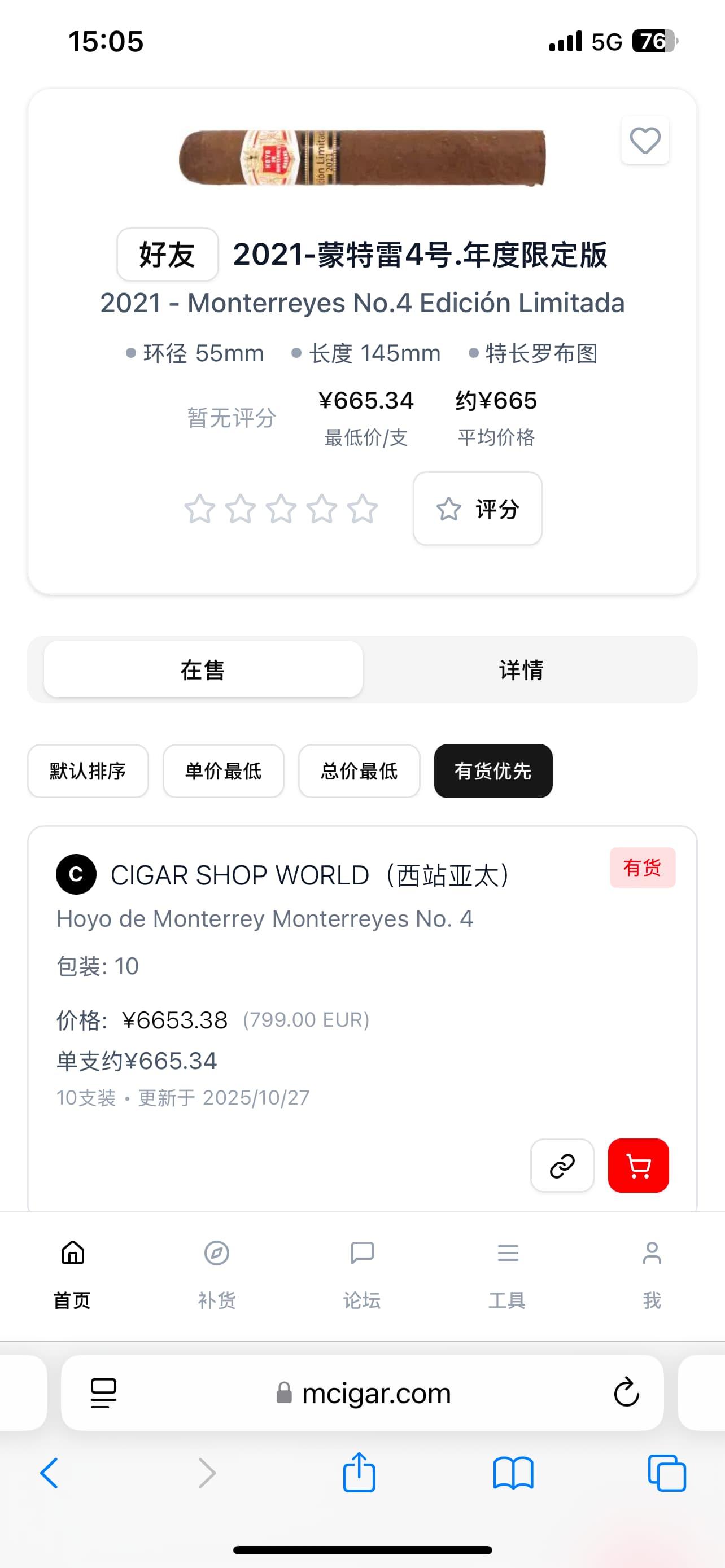 中文名称:好友.德.蒙特雷-蒙特雷4号-2021年度限量版-雪茄